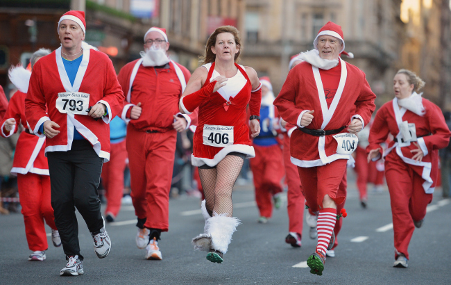 December brought the marvellous marcothon, and a second frantic facebook night as the entries were confirmed for the WHW race. It then followed up with my favourite picture of the year – Helen and I finishing the Santa Dash in Glasgow – we were even syndicated on this one so the picture ended up all round the world! Even more bizarrely December brought another PB for 10K at the Ayr Turkey Trot on Boxing Day which just shouldnt be possible with all that Turkey and wine inside you.