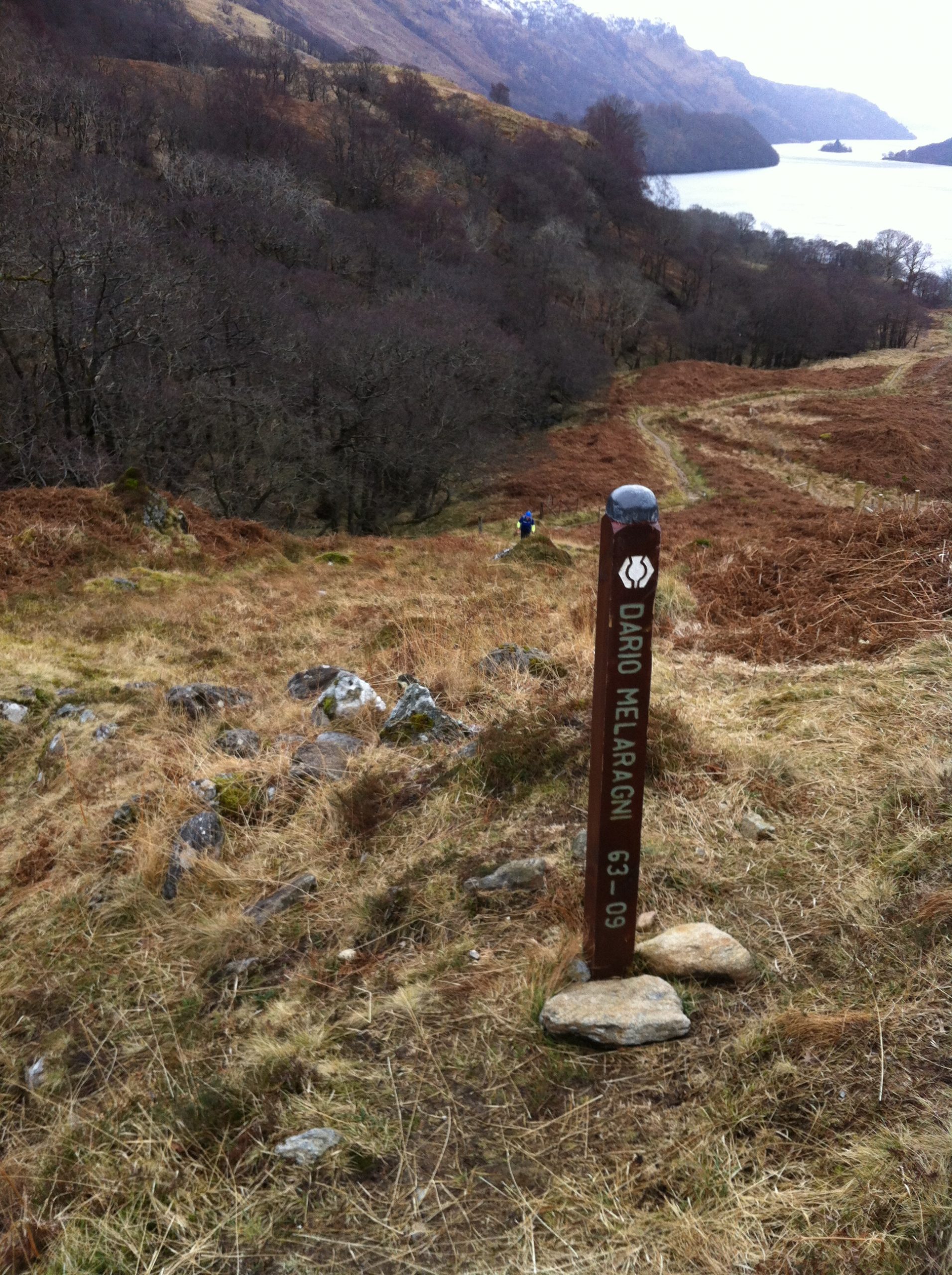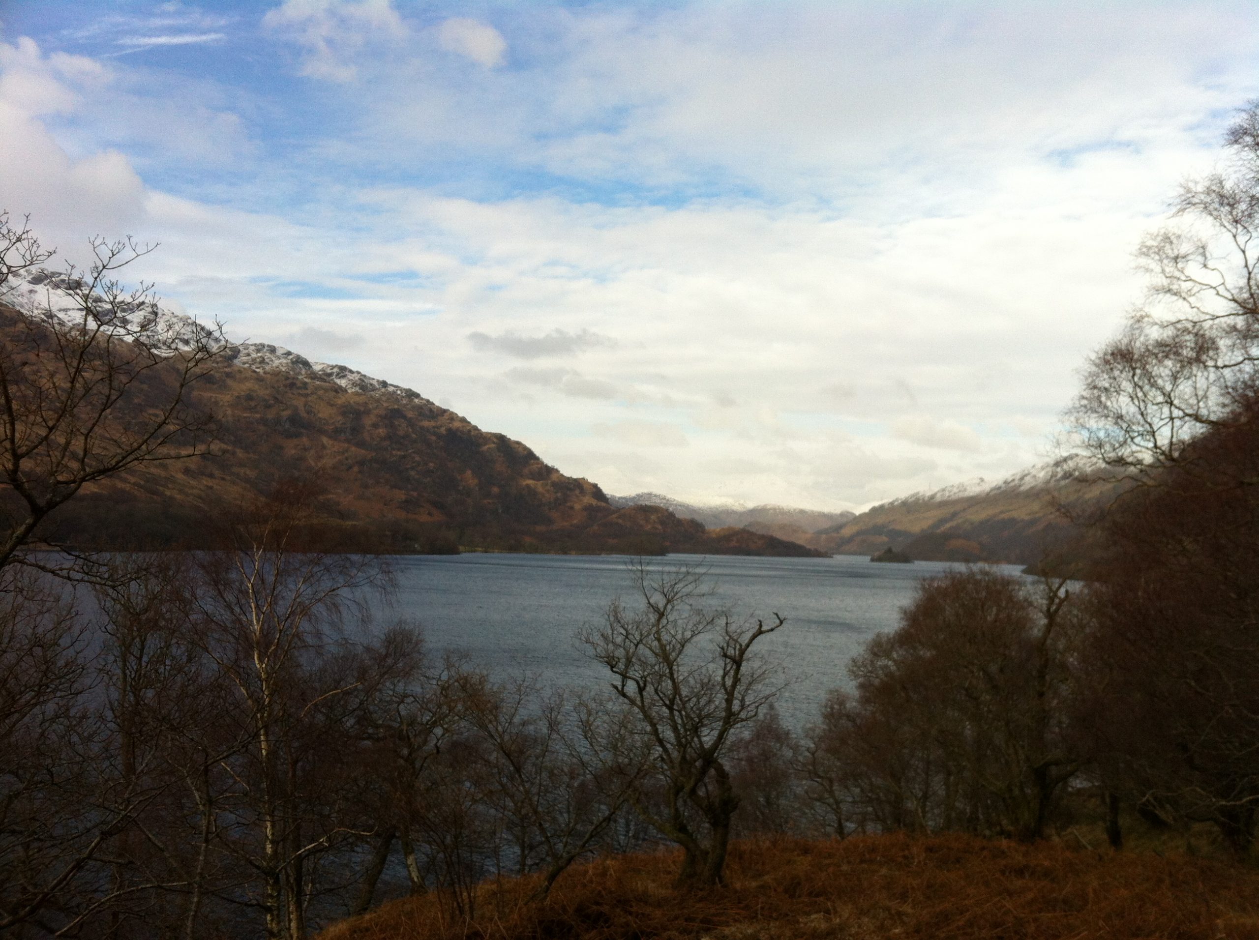We had a day off today, so it seemed like a good idea to go and run this section of the West Highland Way. The weather was bright and clear so it was roof down on the car for the hour long drive to Inversnaid. Helen had been wanting to recce this before attempting the highland fling in April. She writes nicely about it here